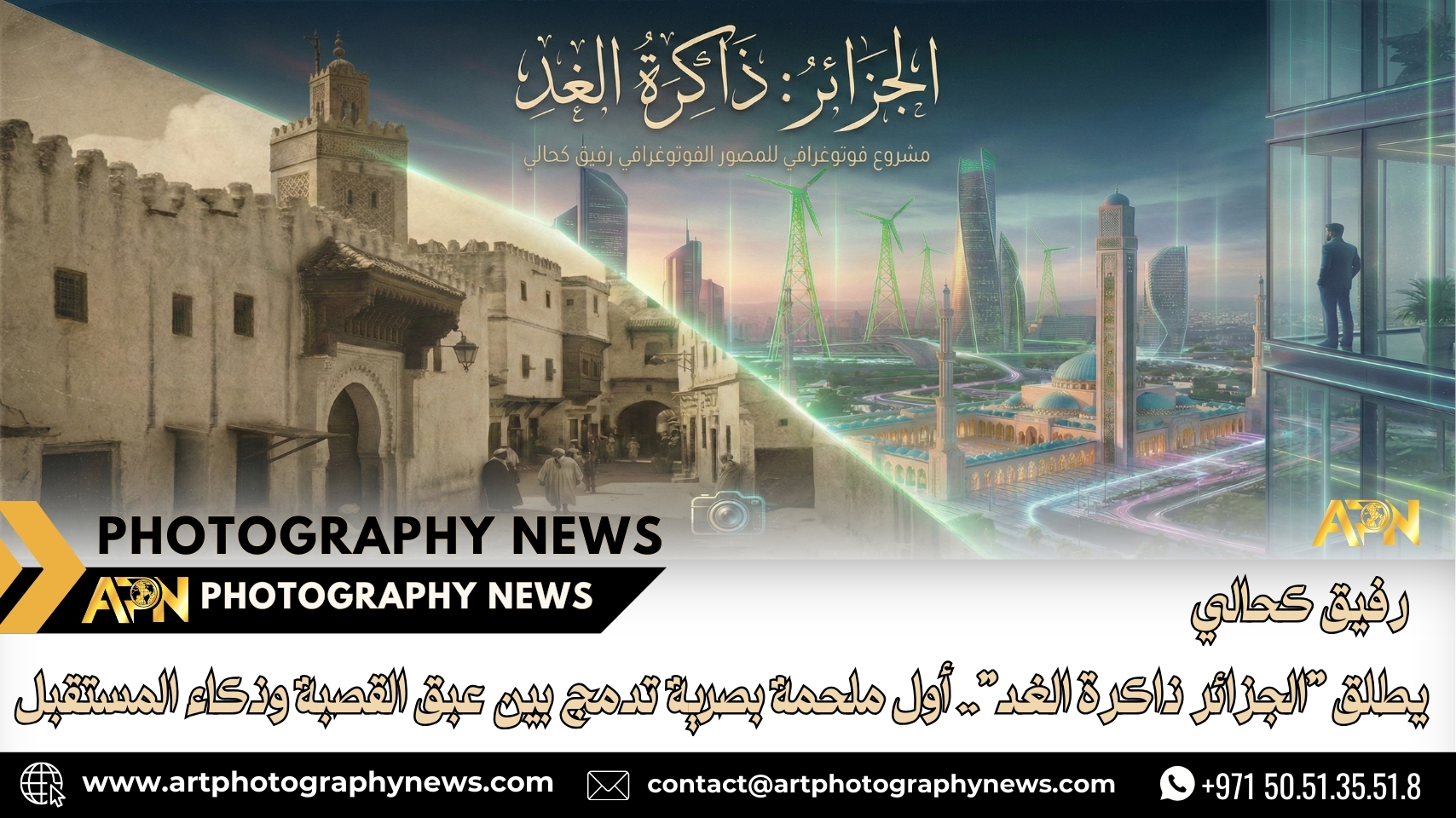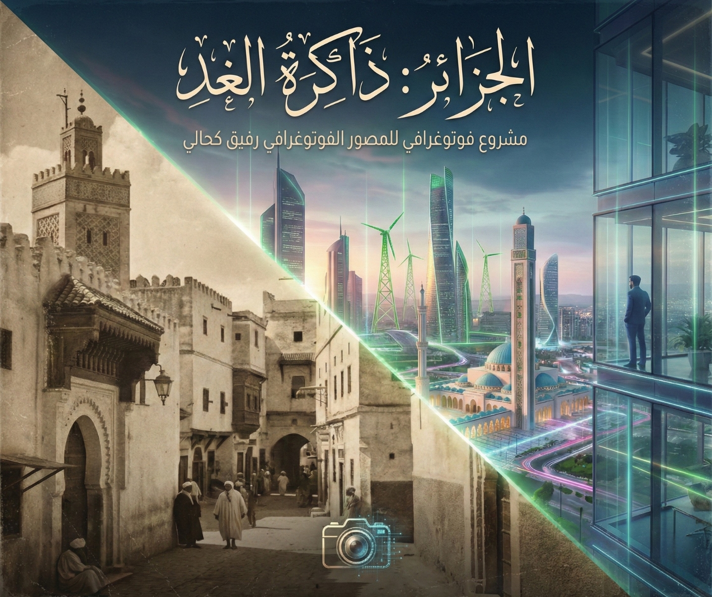 أعلن المصور والمحكم الدولي، ومدير موقع “أخبار فن التصوير الفوتوغرافي”، الفنان رفيق كحالي، عن انطلاق مشروعه الفني الجديد والأكثر طموحاً تحت عنوان “الجزائر: ذاكرة الغد”. ويمثل هذا المشروع قفزة نوعية في المشهد البصري الجزائري، حيث يمزج لأول مرة بين أصالة التراث المعماري وبين تقنيات الذكاء الاصطناعي (AI) لاستشراف مستقبل الحواضر الجزائرية في عام 2050.