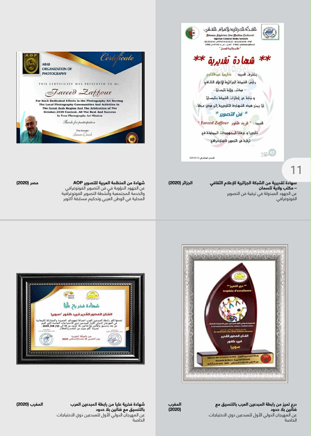 الترشح ضمن أفضل ثلاثة على مستوى الوطن العربي لنشر ثقافة الصورة (مجلة فن التصوير اللبنانية)