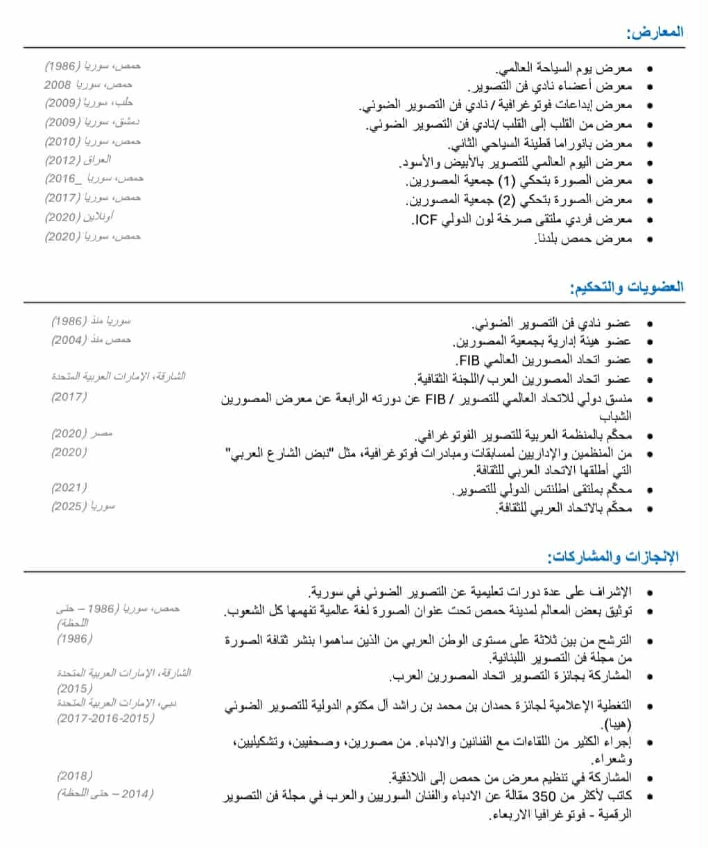 عضو اتحاد المصورين العرب / اللجنة الثقافية (سوريا منذ 1986، حمص منذ 2004)